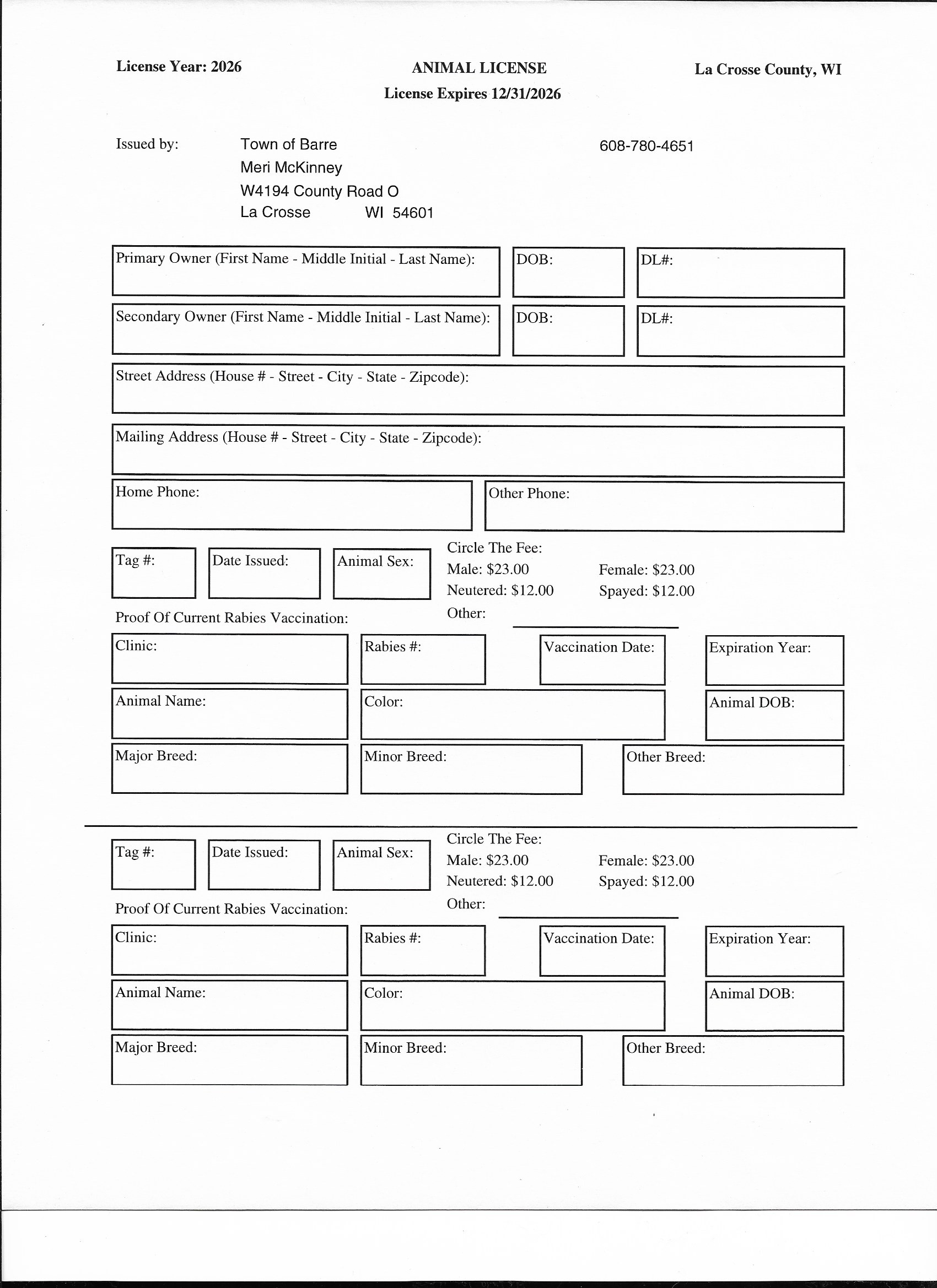 Any other questions, please contact Barre Treasurer Meri McKinney at 608-780-4651.
